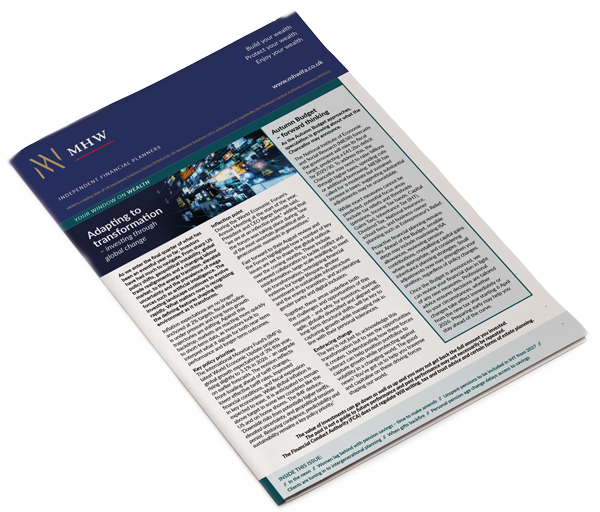 Our quarterly Your Window on Wealth is intended to provide help and insight into how to best get your money working for you, as well as to give an indication of how some key issues could impact in the future.